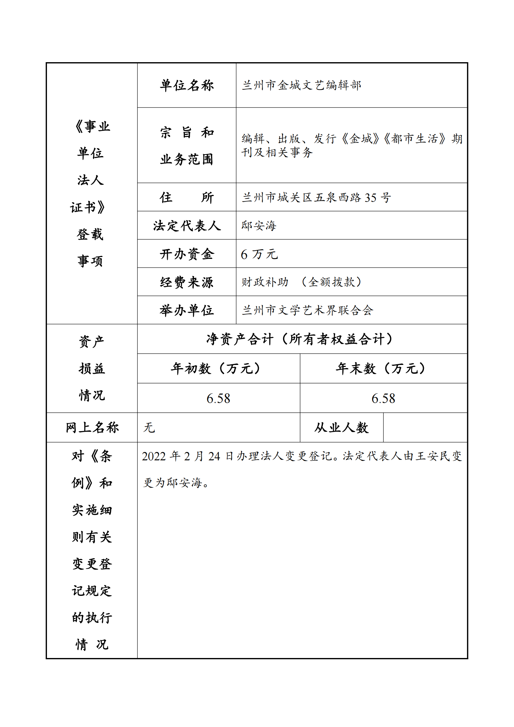 2022年度事业单位法人年度报告书