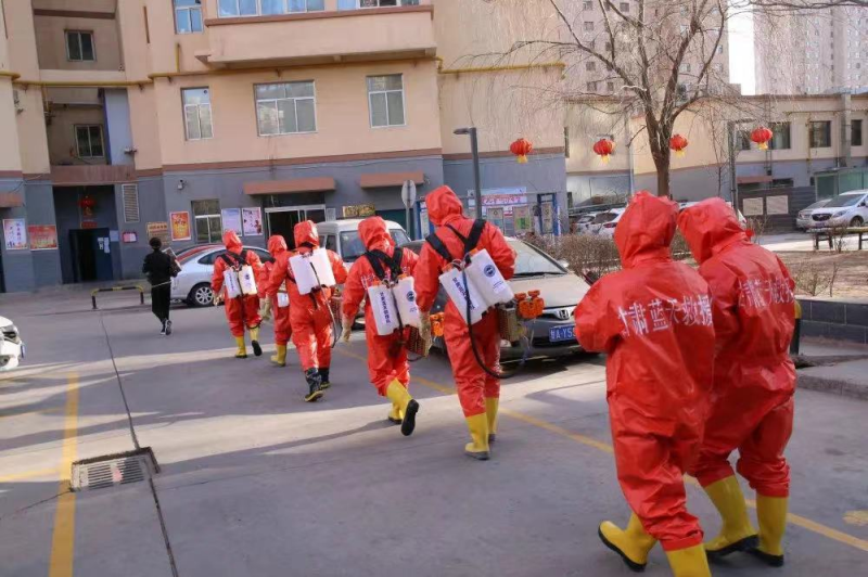 武汉疫情爆发以后,於若飞参与到了为武汉协调物资的志愿服务工作中,为上亿元的防疫物资协调转运,打通武汉防疫物资的最后一公里。去年十月,甘肃突发疫情后,他加入了甘肃省青年防疫志愿服务总队,组织甘肃蓝天救援队对128个街道、276个社区、327家单位、900多所学校进行全面消杀,启动了兰州市100家社区“疫情防控消杀志愿服务体系建设项目。”疫情期间,他在蓝色队服上套上白色防护服,戴好口罩和护目镜,来到临时搭建的救援队消杀中心,然后手持弥雾机,奔赴各个重点防控区域。蓝天救援队的消杀中心在疫情期间为八千多辆客运车进行了全面的消杀。
