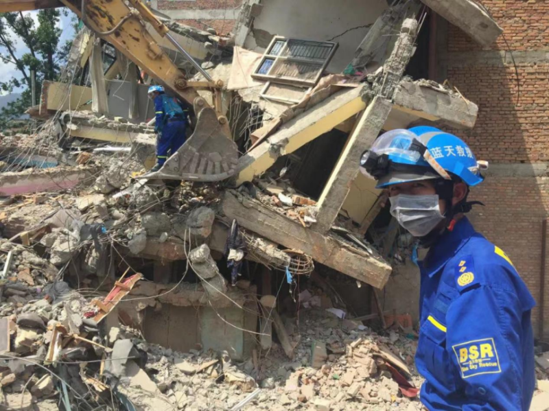 听了於若飞的讲述,我感到意外,无法想象这个年纪比我还小的年轻人经历了这么多惊心动魄、崇高的时刻。我的采访也进入到了尾声。我问於若飞:“你是一个青年,却又从事着这么一个特殊的行业,经历着不同寻常的生活。在这些直面生死的场合中,你对于生命是不是有不同寻常的理解?”於若飞沉思了一会,说:“或许并没有什么特别的理解。有时候体验是很深的,说出来却又像是老生常谈。很简单,就是一句话:生命是极其可贵的,我们应该热爱生命。”他拿起杯子喝了一口茶。那个简单的白色马克杯上印着蓝天救援队的英文缩写:“BSR”。他又说:“就像是我们入队时所说的那样:我们遵循人道的志愿精神,在各种危机面前竭尽所能地挽救生命。仅此而已。”“真是令人敬佩。”