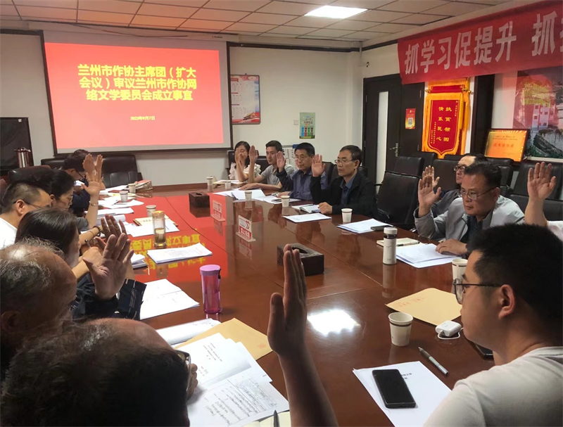 会议学习和传达了党的二十大精神、习近平总书记在文化传承发展座谈会上的重要讲话精神,并进行了意识形态专题学习。传达了中共兰州市委十四届七次全会精神。通报了兰州市作协网络文学委员会成立事宜,审议并通过了《兰州市作家协会网络文学委员会管理制度》和兰州市第一届网络文学委员会主任和副主任人选。作协主席习习总结了兰州市作家协会上半年工作,之后,榆中县作协、皋兰县作协、永登县作协、兰州石化作协负责人就2023年的主要工作及今后的工作构思进行了交流。