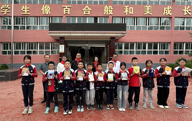 活动当天,西果园小学学生代表为三位嘉宾老师佩戴红领巾,兰州市作协也为学校捐赠了《小王子》《老人与海》《绿野仙踪》等多种学生课外读物。