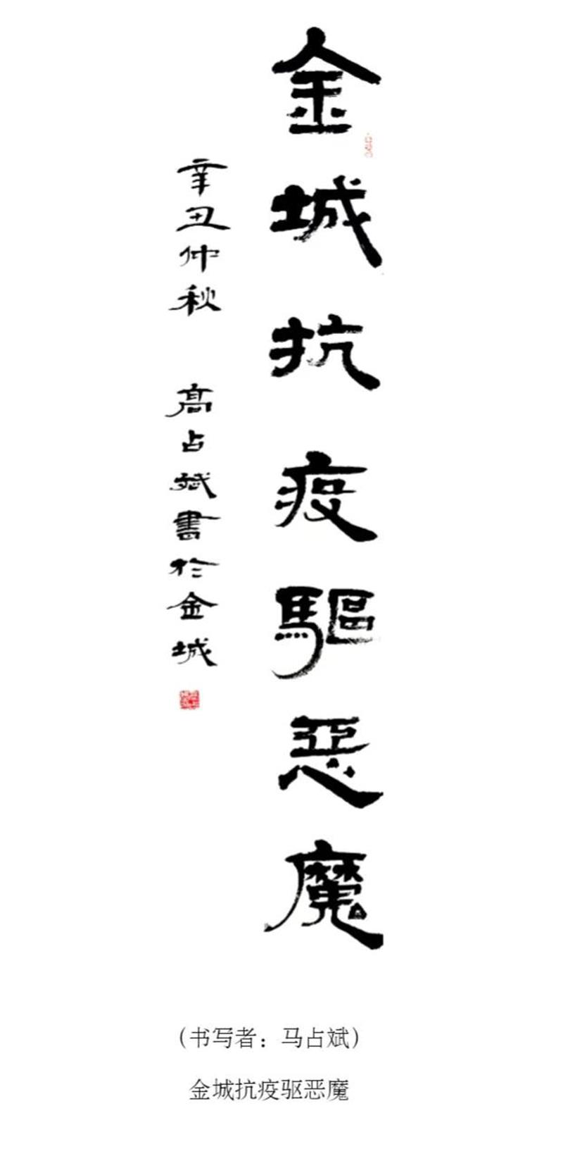 为深入贯彻落实习近平总书记关于疫情防控工作的重要指示精神,体现我市广大书法工作者在疫情面前的责任和担当,金年会官方在线入口网站 、兰州市书法家书法家协会号召广大书法工作者、爱好者用手中的笔墨助力疫情防控的宣传,创作出鼓舞气势、凝聚人心的正能量书法作品,助力兰州早日战胜疫情。