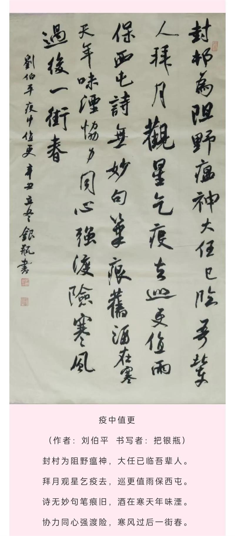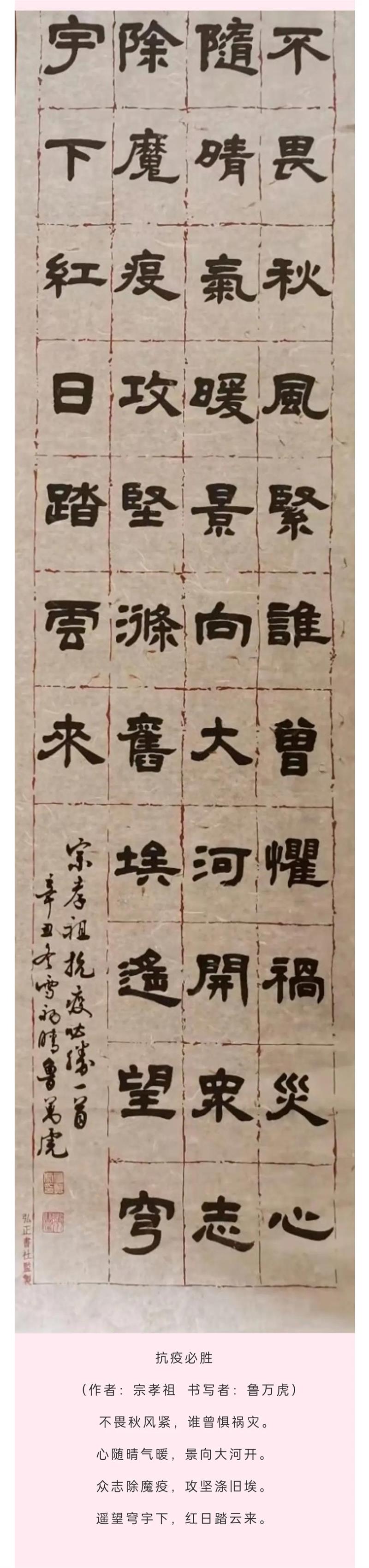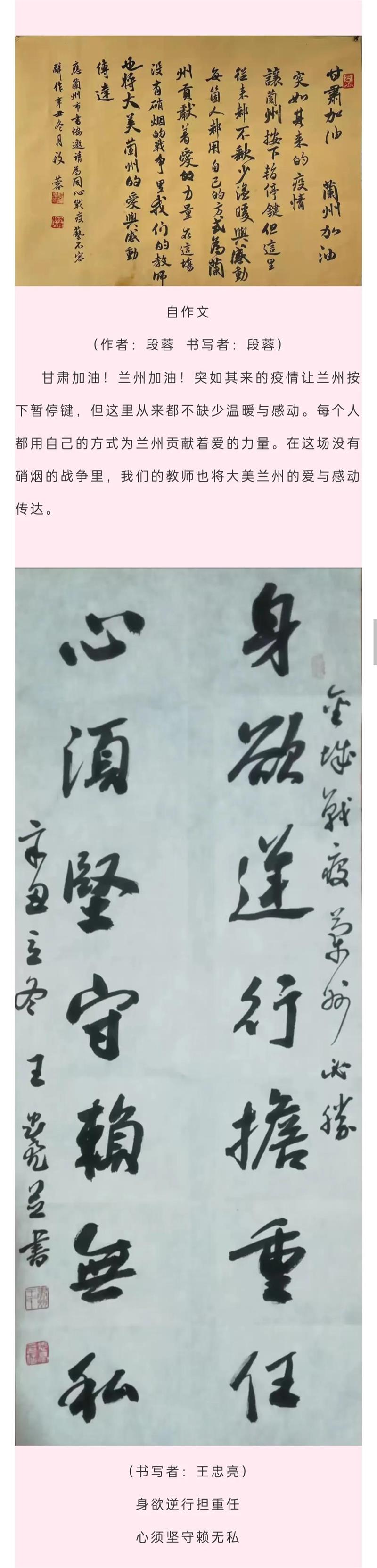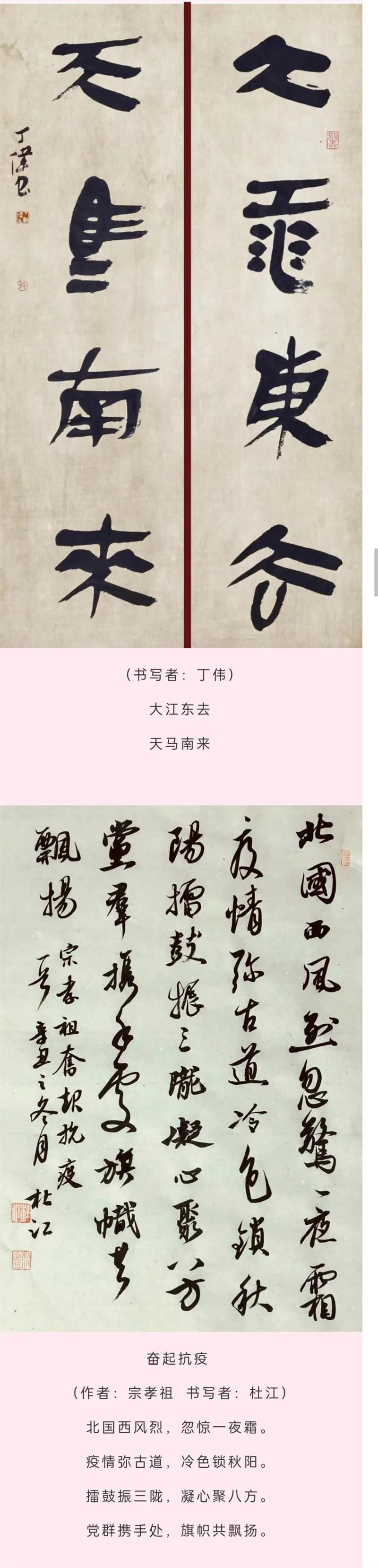 为深入贯彻落实习近平总书记关于疫情防控工作的重要指示精神,体现我市广大书法工作者在疫情面前的责任和担当,金年会官方在线入口网站 、兰州市书法家书法家协会号召广大书法工作者、爱好者用手中的笔墨助力疫情防控的宣传,创作出鼓舞气势、凝聚人心的正能量书法作品,助力兰州早日战胜疫情。