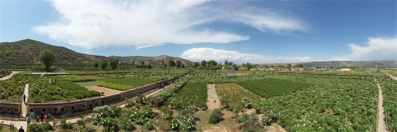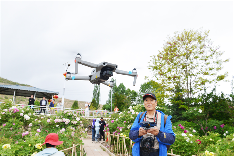 牡丹园内,国色耀眼、天香沁心,来自四面八方的游客穿梭在盛开的牡丹丛中赏花乐事,拍照聊天,放松身心沉浸在这醉人的盛景中。摄影家们一来到临洮县曹家坪原野牡丹园,便举起相机各自寻找最佳机位和角度,按下快门,以独特的视觉、专业的航拍摄影技法和充满灵感的镜头记录美景拍出自己最满意的作品。