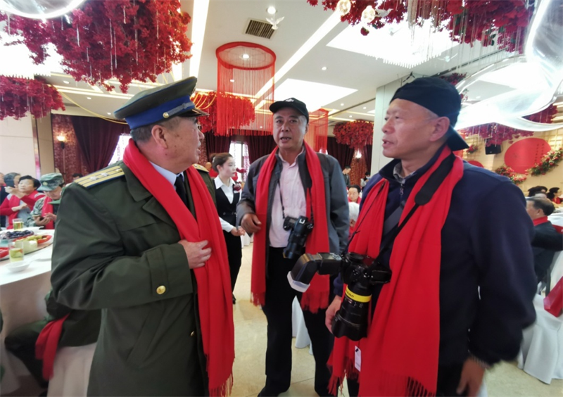 10月12日上午,来自街道6个社区的国企退休职工、孤寡老人、退伍老军人、困难居民、老党员、特殊家庭共计100多名老人欢聚一堂参加此次重阳节活动。活动期间,市摄协文艺家志愿者与社区工作人员一一为老人们“披红”(佩戴红围巾)、合影,向老人们送去节日最诚挚的问候与祝福。