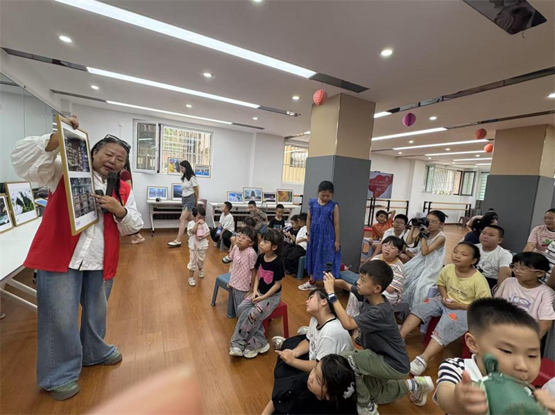 孩子们在近距离欣赏摄影作品的同时,聆听摄影师讲解构图、光影等技巧,并动手实践拍摄。志愿者与孩子们热烈互动,一位小学生兴奋地说:“以前觉得摄影展离我很远,现在在家门口就能看到,还能学到知识,太有意义了!”公益课堂不仅丰富了社区暑假托管班的内容,更激发了青少年对摄影艺术的浓厚兴趣,促进社区文化共建,为孩子们的暑期生活注入活力。