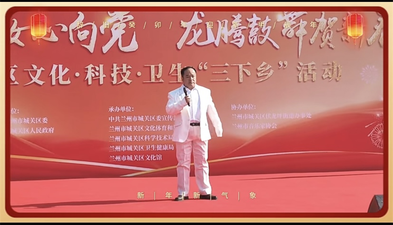 1月29日下午,陈凯、苏玮、李梦青、居廷等四位兰州市音乐家协会的会员,响应号召,代表兰州市音协参加了由兰州市城关区委宣传部、区委政法委、城关公安分局、区科技局、区民政局、兰州市音乐家协会等单位联合开展的2024年文化科技卫生“三下乡”活动,为城关区伏龙坪街道头营村的乡亲们送上了一份”音乐大餐“,同时活动也展示了兰州音乐人热心公益、心系百姓的良好精神风貌。