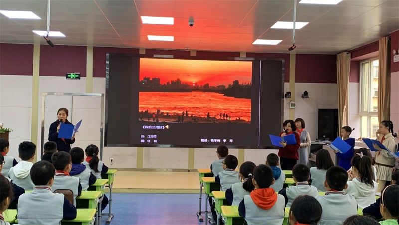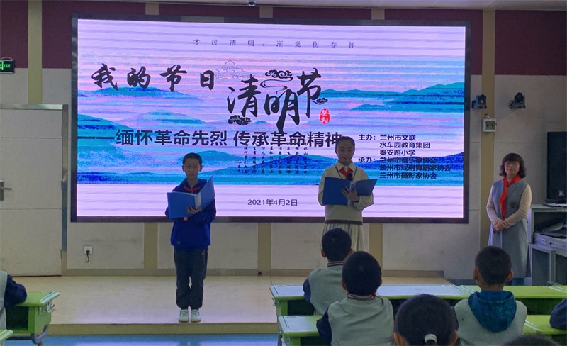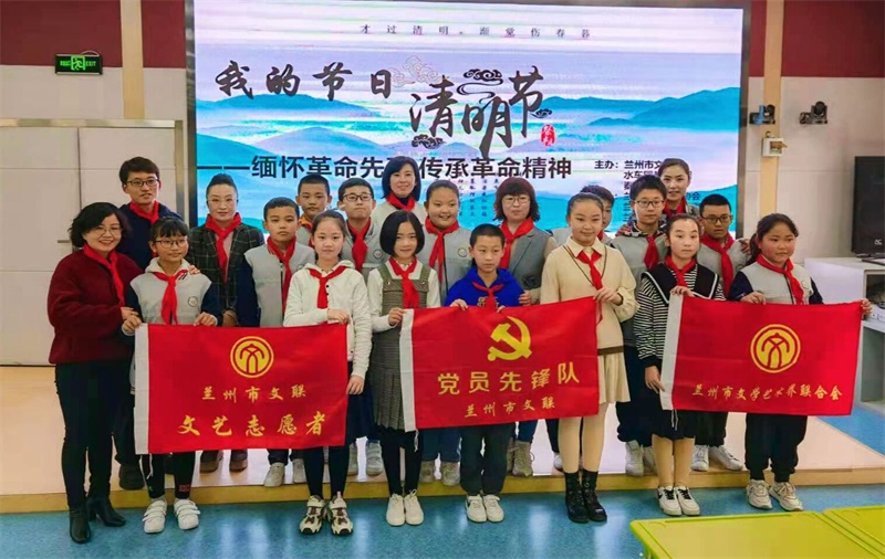 活动现场,少先队员们出队旗,唱队歌,并为志愿者们佩戴红领巾。文艺志愿者为小朋友们讲清明节的来历,朗诵诗歌《我忆兰州好》、诵读并歌唱《诗经·蒹葭》等节目,受到了小朋友和老师的普遍欢迎和喜爱,赢得了在场学生的阵阵掌声。