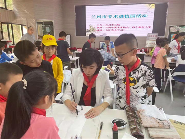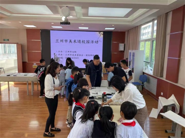在市文联的统一安排下,兰州市书法家协会、兰州市美术家协会精心组织和安排,在两所学校多功能教室为孩子们准备了一堂生动的课外书法、美术课。活动现场,书法家和美术家分别和学生们讲解书法绘画创作。在授课过程中,艺术家们“一对一、手把手”教孩子们写字绘画,从执笔姿势、坐姿、写姿等,亲自示范,耐心细致的讲解。学生们不时聚在一起,和书画家们相互交流、探讨,现场气氛非常融洽。