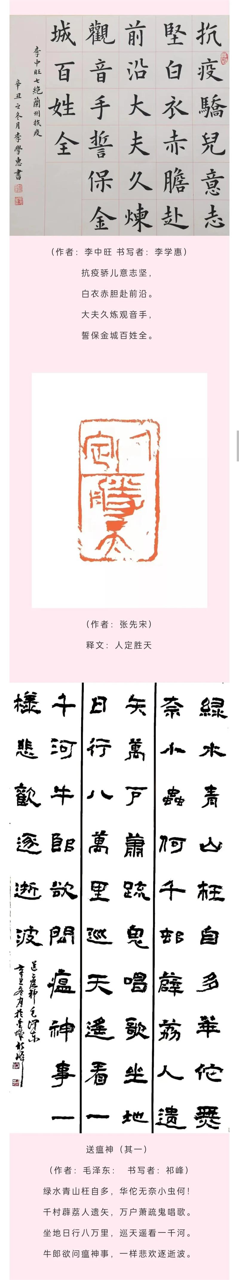 为深入贯彻落实习近平总书记关于疫情防控工作的重要指示精神,体现我市广大书法工作者在疫情面前的责任和担当,金年会官方在线入口网站 、兰州市书法家书法家协会号召广大书法工作者、爱好者用手中的笔墨助力疫情防控的宣传,创作出鼓舞气势、凝聚人心的正能量书法作品,助力兰州早日战胜疫情。