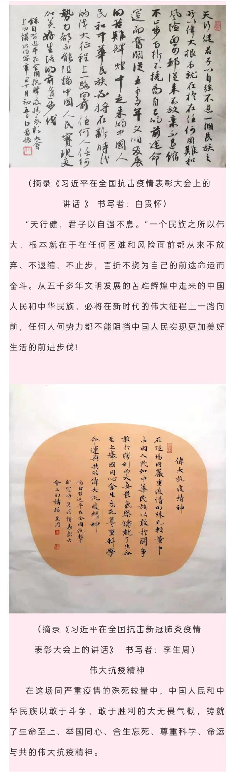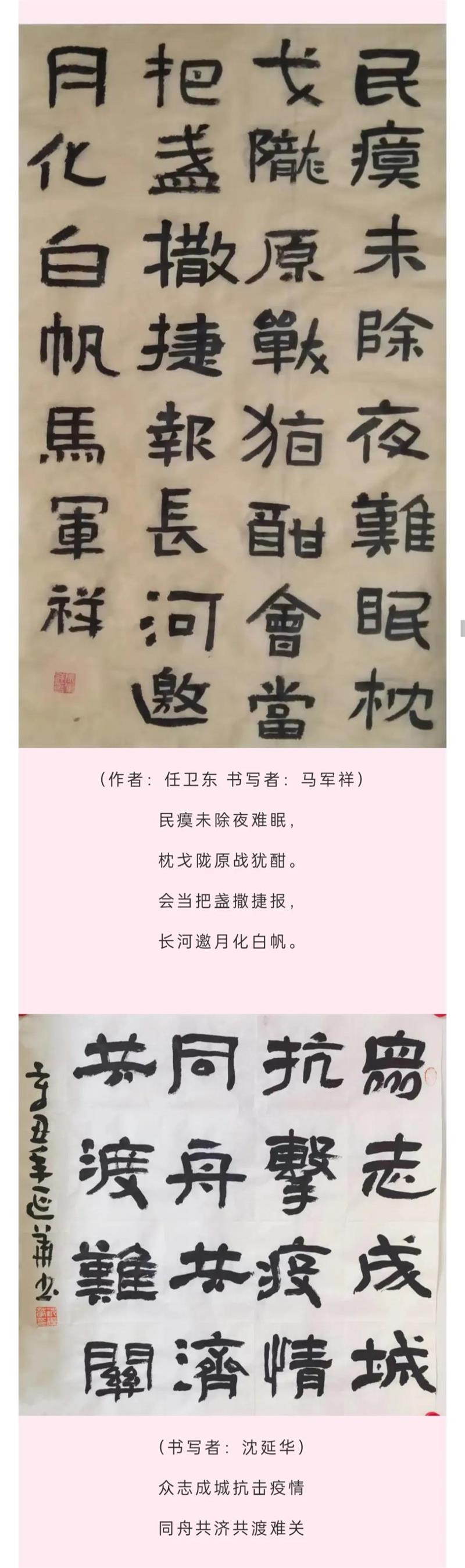 为深入贯彻落实习近平总书记关于疫情防控工作的重要指示精神,体现我市广大书法工作者在疫情面前的责任和担当,金年会官方在线入口网站 、兰州市书法家书法家协会号召广大书法工作者、爱好者用手中的笔墨助力疫情防控的宣传,创作出鼓舞气势、凝聚人心的正能量书法作品,助力兰州早日战胜疫情。