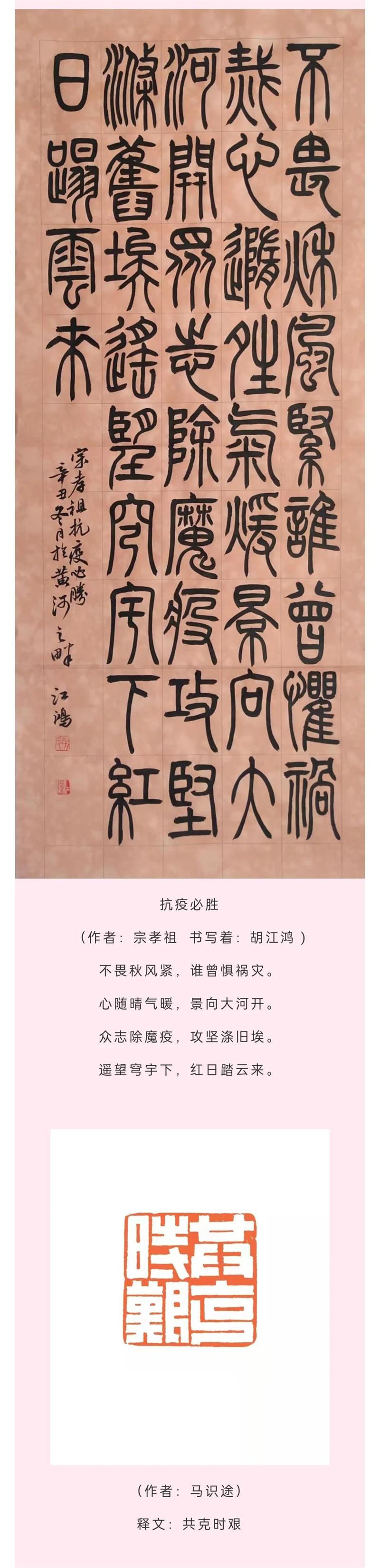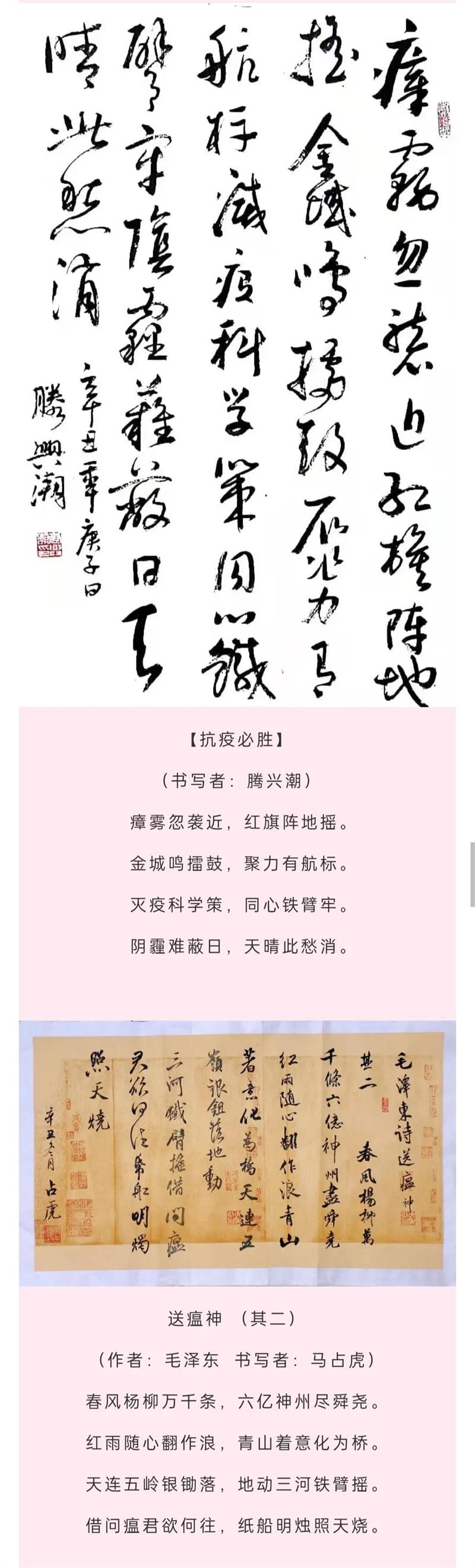 为深入贯彻落实习近平总书记关于疫情防控工作的重要指示精神,体现我市广大书法工作者在疫情面前的责任和担当,金年会官方在线入口网站 、兰州市书法家书法家协会号召广大书法工作者、爱好者用手中的笔墨助力疫情防控的宣传,创作出鼓舞气势、凝聚人心的正能量书法作品,助力兰州早日战胜疫情。