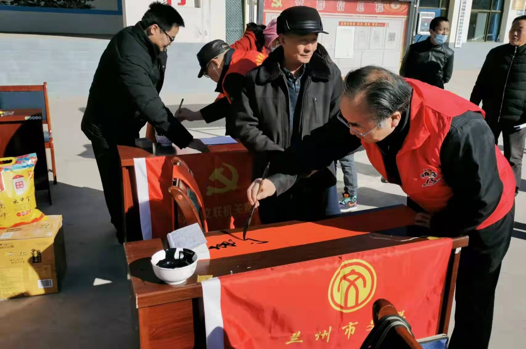 帮扶干部与驻村工作队员分头前往行动不便的帮扶群众家中,将写满祝福的春联和慰问品逐户送到他们手中。随行的爱心企业代表与村委会进行了工作对接,提前谋划下一步乡村振兴发展的有关项目。来自兰州市书法家协会的文艺志愿者现场挥毫拨墨,为村民写春联、写福字,“虎步奔腾开胜景,春风浩荡展鸿图”“虎踞龙盘今胜昔,莺歌燕舞呈吉祥”等一副副春联书写着阖家团圆的喜悦与乡村振兴发展的美好前景,充满着喜庆、祥和与祝福,整个场面充满浓浓的文化气息和欢乐的节日氛围。为表达对爱心企业参与帮扶行动爱心慰问和发展谋划的感谢,市文联还向参与此次捐赠活动的5家爱心企业颁发了捐赠证书。