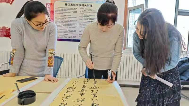 当日的活动中,甘肃省书协理事、兰州市书协副主席李淑娟及多位市书协文艺志愿者现场讲授书法基础知识,并现场挥毫书写书法作品,指导现场干部群众练习书法写作。