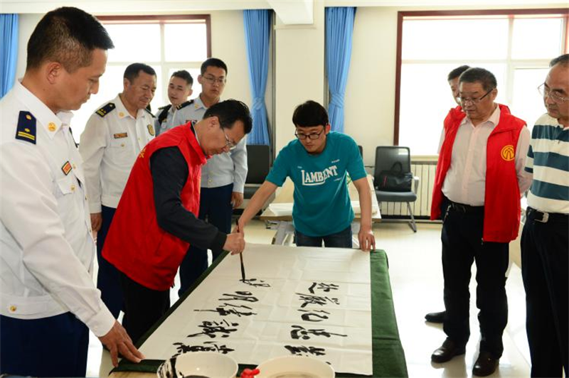 书画家们现场为指战员普及中华传统文化和书画艺术知识,为指战员送上了一幅幅遒劲有力、潇洒飘逸的书画作品,表达了对指战员们的崇高敬意,赢得了在场指战员的交口称赞。