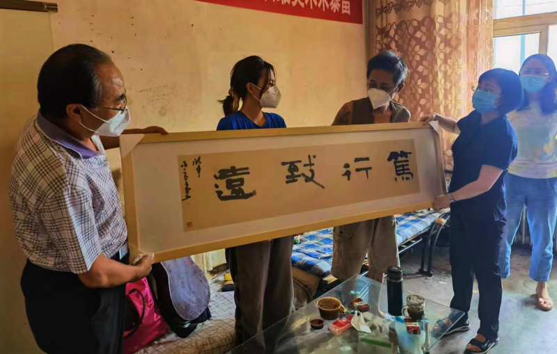 8月19日,市文联党组书记、主席李晓华将全体机关干部、各文艺家协会捐助的12000元助学金,以及市书协的艺术家创作书法作品,亲自交到王紫妍同学的手中,并叮嘱她要好好学习,自强不息,将各界人士的爱心化作学习奋斗的动力,用知识提升能力,用能力支撑家庭、回馈社会。