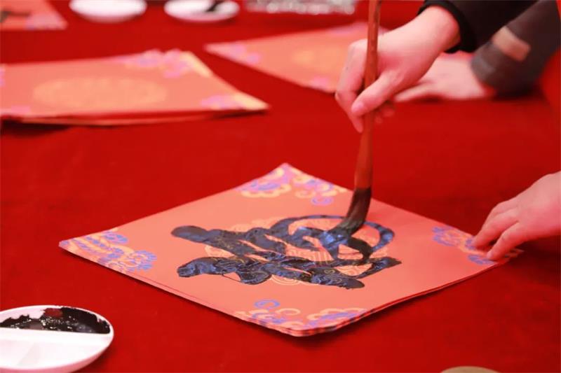 来自兰州市书法家协会的书法家们把对广大市民群众的新春祝福和未来期许融入笔墨中,现场挥毫泼墨,写下了一张张饱含祝福的“福”字、“春联”。