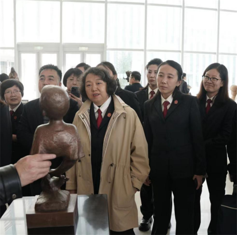 在省中心医院的精心安排下,医院相关领导对医院的医疗保健机构、人文艺术馆、医学科技馆三馆合一的建设理念做了讲解,并带领女法官、女艺术家们对医院进行参观介绍。从人与自然、生命与艺术的角度讲解艺术对心灵与疾病的疗愈作用。在医院工作人员的带领下,大家从生命起源景观至黄河血脉雕塑,到医院大厅的摄影展、雕塑展、图书馆等进行参观学习,同时参观了医院各功能区。大家感受到了生命与艺术的一种完美的结合,体验了一场医学的“真”与人文的“善”和艺术的“美”的心灵滋养。