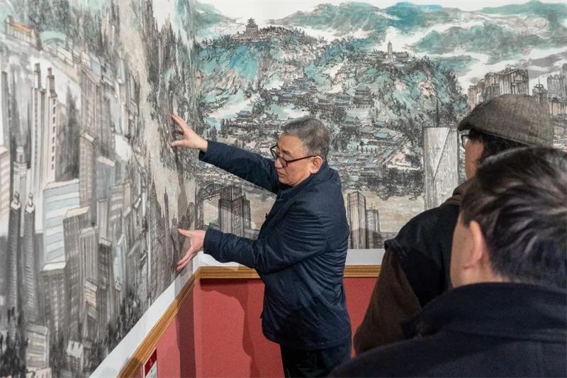 调研中,王登渤仔细观摩了各区域各门类参展作品,对部分作品从立意构思、技巧技法、题材内容、审美取向等各个层面进行了点评,在肯定创作作品的同时,也指出了不足、提出了修改建议,艺术家们纷纷表示受益匪浅、收获良多。