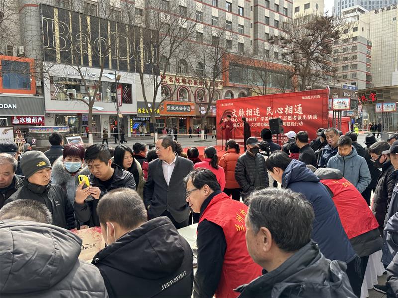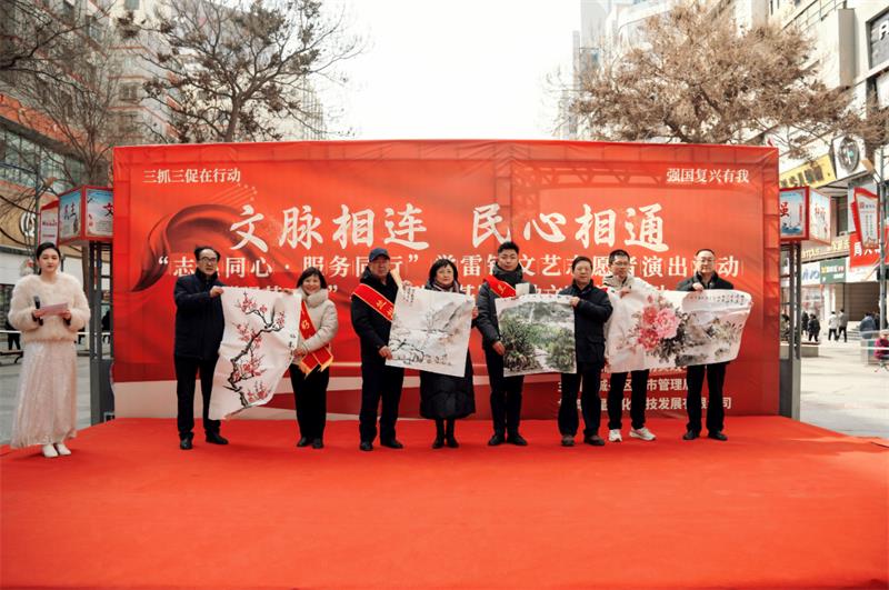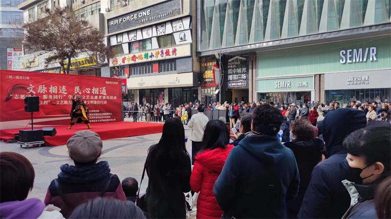 3月5日,由金年会官方在线入口网站 主办,城关区新时代文明实践中心 、城关区城市管理局共同协办的“文脉相连·民心相通”、“志愿同心•服务同行”暨“学雷锋·文明实践我行动”文艺志愿演出活动,在城关区张掖路步行街举办。