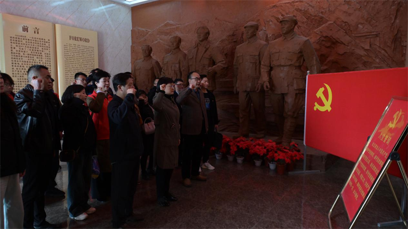祭奠仪式结束后,全体党员干部来到兰州战役纪念馆,重温入党誓词,沿着革命的轨迹,循着先辈的足迹,认真观看了有关革命历史和英雄事迹的珍贵图片资料。一幅幅反映历史的珍贵照片、一件件历经风雨的珍贵史物、一段段震撼人心的英雄事迹让大家接受了一次深刻的思想洗礼和党性教育。