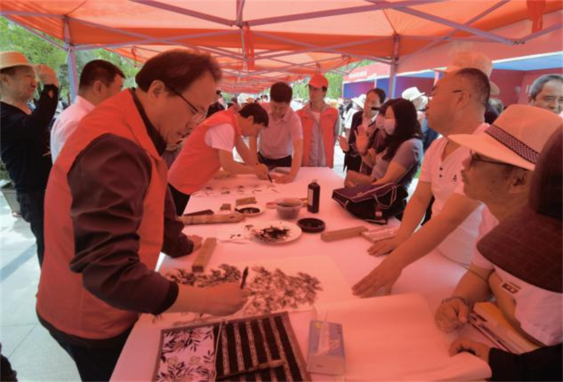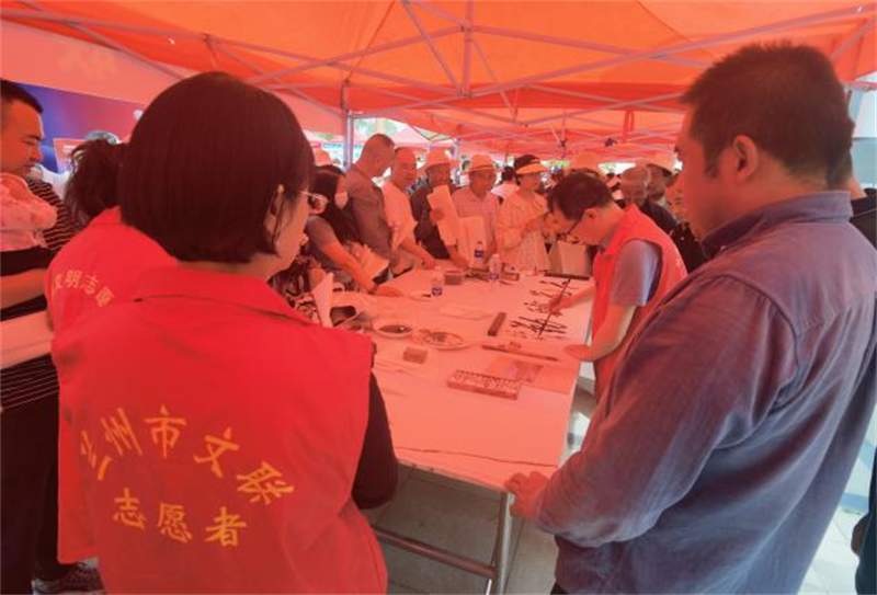 在省、市、县文联展区,参与活动的书法家、美术家现场泼墨挥毫,为群众展示书法、美术的创作过程,为书法美术爱好者点评授课。市民群众纷纷在桌案旁驻足,一边感叹书法美术艺术的精妙,一边有序排队选择自己心仪的书法家和美术家的作品,主动和书法家、美术家拍照留念。共向市民群众赠送了40余幅书法美术作品,向永登县捐赠了150幅书画作品。
