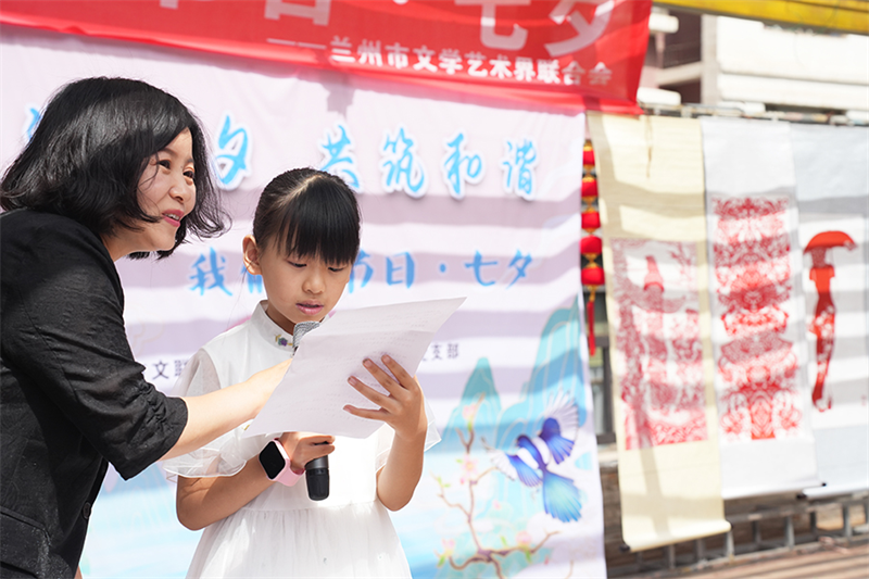 兰州市作家协会秘书长讲解了七夕节的历史渊源、传统习俗和文化内涵。党员、居民和诗文少年一同朗诵与七夕相关的经典诗词,深切感受其中的浪漫情怀。