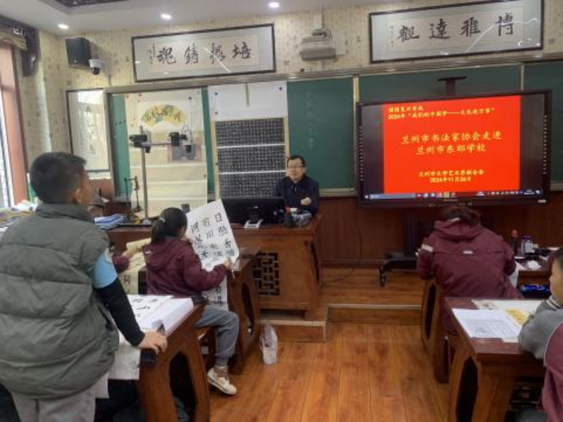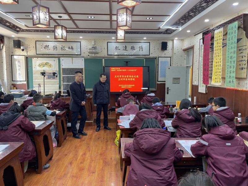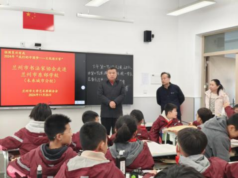 兰州市书协主席汪志刚,副主席陈延凯分别在兰州市东郊学校、兰州市东郊学校未来城市分校,为学校四、五、六年级共1110名学生进行现场书写指导。他们向学生普及书法文化知识,使学生们对书法艺术有了更为深入的理解;同时,深入浅出地讲解书写技法、理论知识等,并对同学们创作的书法作品给予了专业指导。