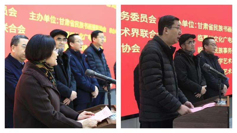 甘肃省文联原党组书记、甘肃省民族书画摄影协会名誉会长马少青,临夏州委常委、宣传部部长万学科出席开幕式,金年会官方在线入口网站 党组书记、主席李晓华、临夏州文联党组书记、主席苏靖宁出席开幕式并致辞。