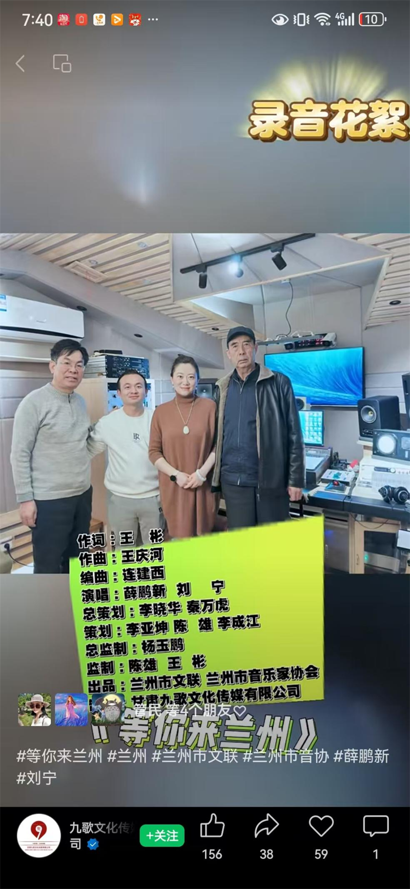 1月14日,由市文联主办、市音协承办的“新歌唱兰州”主题歌曲创作活动圆满结束。市音协创作委员会精心创作了两首歌曲《想你的风吹到了兰州》和《等你来兰州》。这两首歌曲吸收了流行音乐的元素,汲取了民谣和地方的歌调旋律,突出“时尚歌曲写作”的概念,以通俗化的方式呈现了兰州城市传统与现代交织的独特魅力,弘扬了时代精神风貌。新春佳节之际,这两首歌曲将带给广大市民及游客节日的欢乐感、幸福感与归属感,进一步增强了城市的凝聚力和向心力。