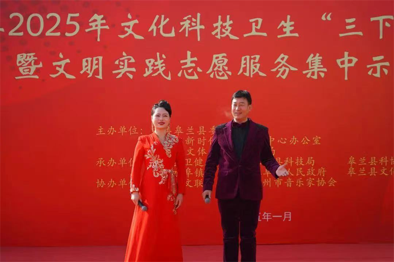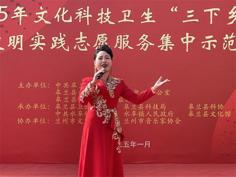 1月14日,金年会官方在线入口网站 、市音乐家协会组织文艺志愿小分队前往水阜村新时代文明实践站,为皋兰县2025年文化科技卫生“三下乡”主题活动增添色彩。水阜村文化广场上人群熙熙攘攘,音协会员张心华、百灵、王华、孙伶俐等用他们精湛的专业水平和丰富的经验,为父老乡亲送上了优美动听的歌声和真挚的节日祝福。互动式的表演风格、淳朴热烈的情感赢得了现场观众的阵阵掌声。孙伶俐作为皋兰籍文艺工作者,演出结束后感慨地说:“今天演唱的原创作品《鼓子新韵唱家乡》,是我与市音协蔡宁贞老师对皋兰非物质文化遗产‘兰州鼓子’的创新性尝试。新的一年,我将继续为家乡特色文化做好宣传推广。”