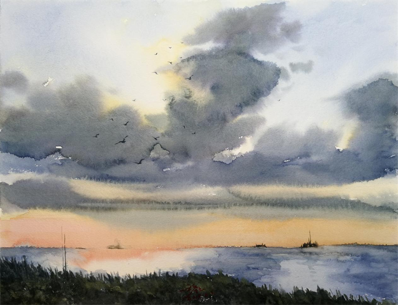 水彩-晚霞时光