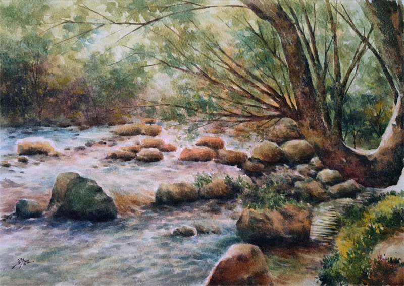 水彩-渭源河小景