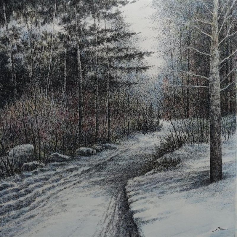 钢笔淡彩-初雪映像
