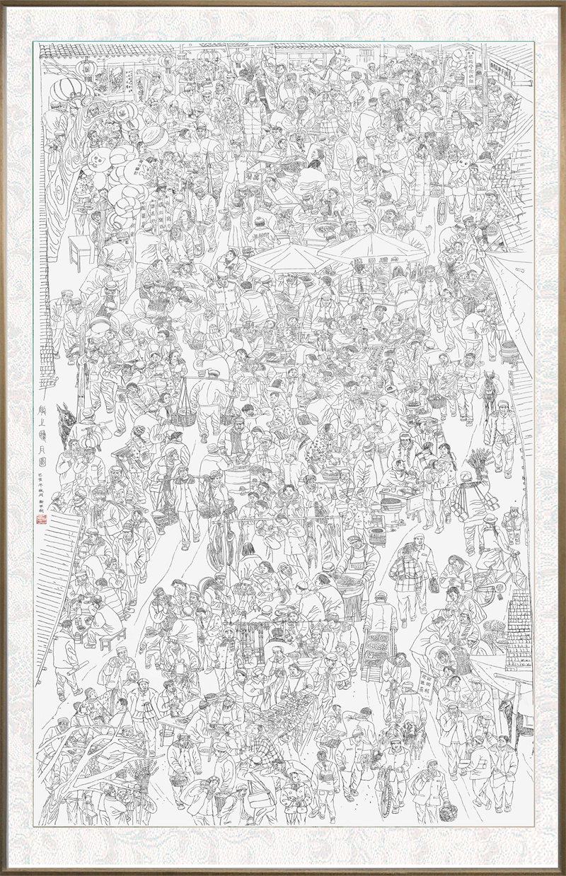 2022年1月,中国画线描 《陇上腊月图》180cmax97cm, 入选全国第六届中国画线描艺术展。(中国美协)