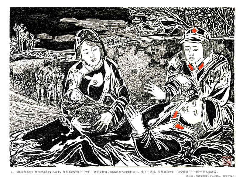 钢笔连环画《西路军轶事》尺寸47cmX33CM