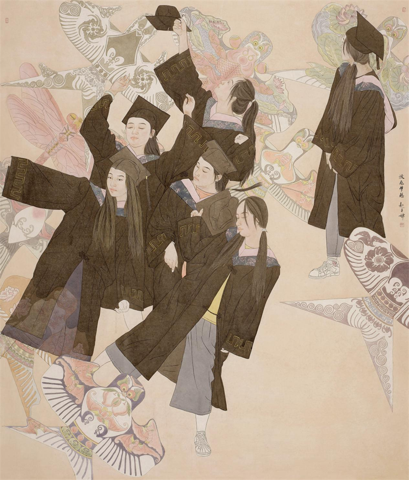 2018年 中国画 《放飞梦想》 236cm×196cm 入选由中国美术家协会主办的“翰墨青州·2018 全国中国画作品展”并收藏。