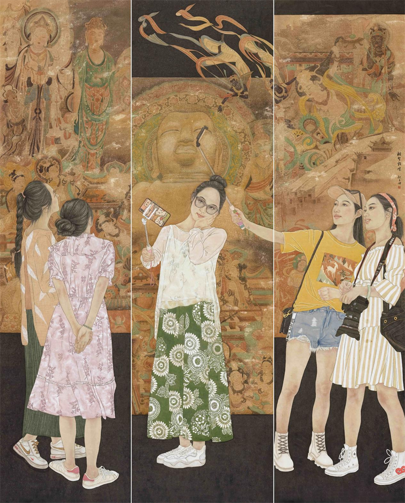 2019年 中国画 《情系丝路•圆梦敦煌》 236cm×190cm 入选由中国美术家协会主办的“时代丹青·全国第三届现代工笔画作品展”,作品在北京民族文化宫展出,并收藏。