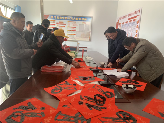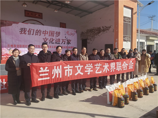 开场舞蹈《花开盛世》拉开义演序幕,随后,歌曲《幸福万家长》、舞蹈《歌舞太平》、魔术《顶缸》、民间艺术家“花儿表演”等,由省市专业艺术家们精心准备的高水准的节目轮番上演。台上好戏连连,台下掌声热烈,在一个半小时的文艺演出中,现场气氛一次次的被推向高潮。来自兰州市书法家协会的几位书法家现场为村民写春联、写福字,“小康阔步春光好,大道长驱曙色新”“迎新春事事如意,接鸿福步步高升”等一副副春联充满喜庆、祥和、祝福,整个场面充满浓浓的文化气息和欢乐的节日氛围。