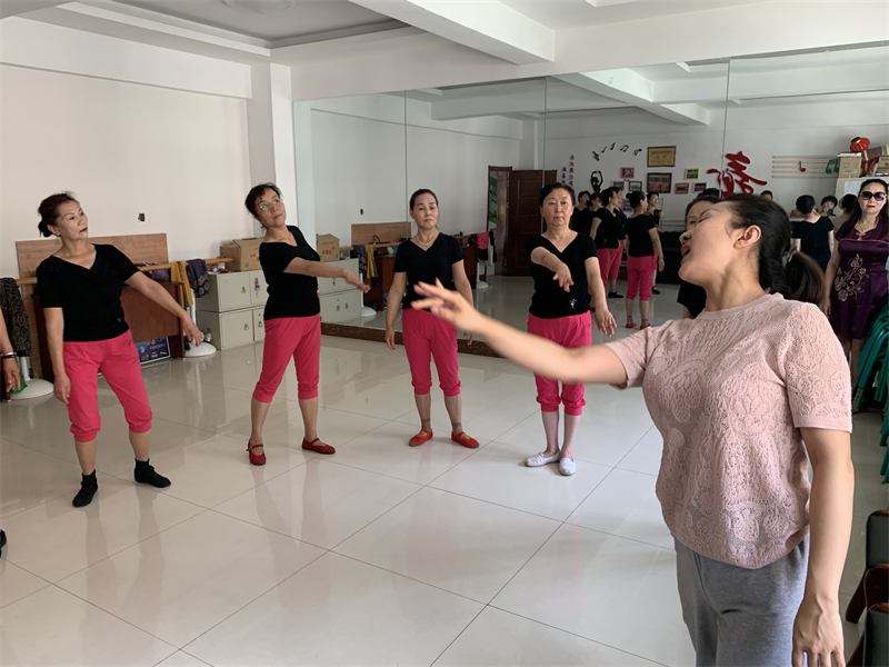 (市舞蹈家协会艺术家指导社区艺术团排练八一节目)